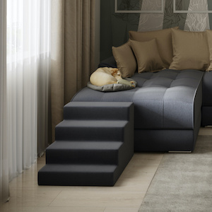 Лестница изготавливается в цвет дивана. Выполнена из ППУ, предназначен для животных до 5 кг.